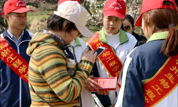 活动中,志愿者们为盲部的儿童准备了他们需要的生活用品及文具等,在了解了盲部学生的学习和生活情况后,志愿者带着孩子们一起来到龟山探梅园,帮助他们将制作的手工艺品、玩具等进行了义卖。受志愿者的影响,现场的游客纷纷响应,对孩子们手中的工艺品进行了抢购,并对思源志愿者们竖起了大拇指。