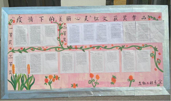 我院通过线上线下渠道对学生进行心理健康教育有关内容进行宣传和心理健康知识普及。首先,我院积极创设学院心理环境,通过微信公众号、院宣传板、横幅、黑板报等渠道宣扬积极心态;其次,我院教师通过线上媒体带领学生开展心理主题教育班会课,围绕“感悟生命”、“朋辈互助”等主题引领同学们进一步提高心理素质。