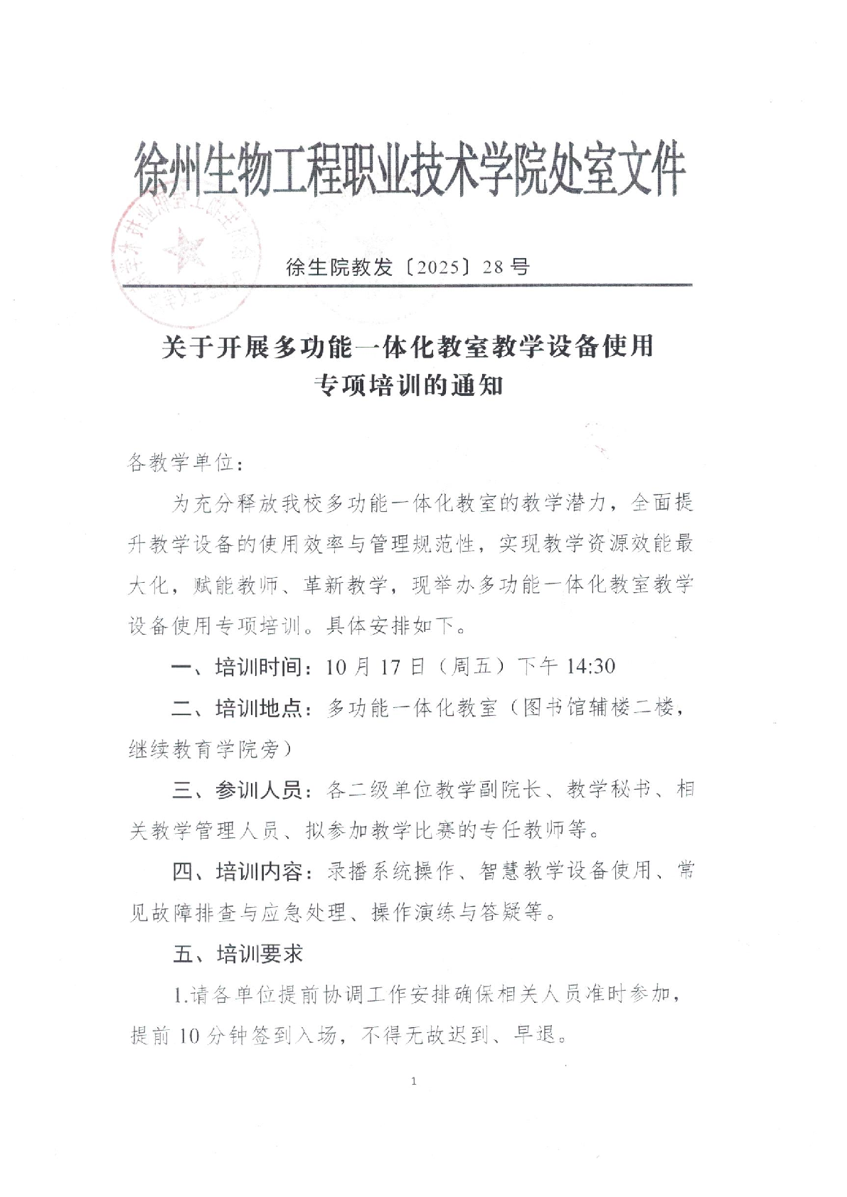 关于开展多功能一体化教室教学设备使用专项培训的通知