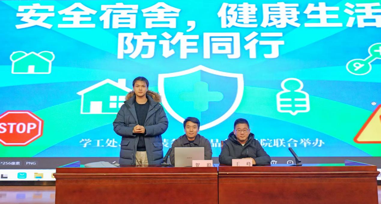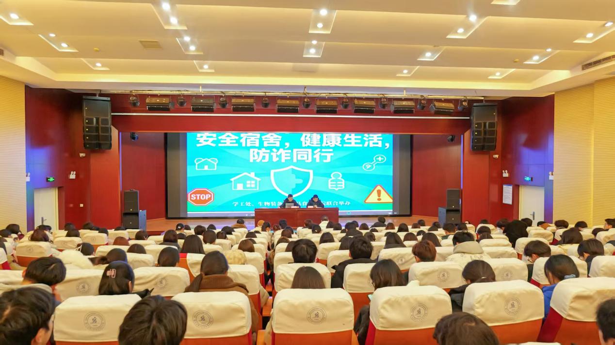 12月11日晚,药品食品学院与生物装备学院联合举办了公寓卫生安全讲座,特邀学工处公寓管理科老师,就宿舍安全、生活卫生、防诈反诈等方面为同学们带来了一场深入浅出的讲解。