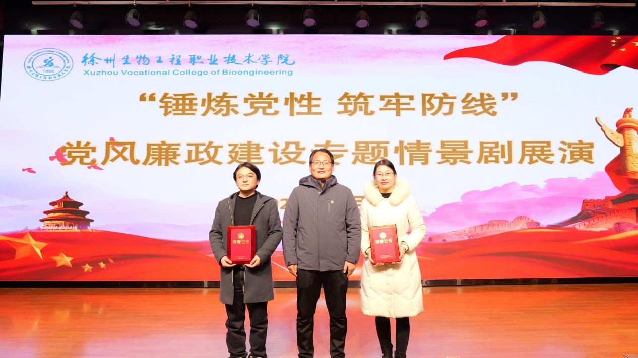1月7日,徐州生物工程职业技术学院“清风润园 廉洁育人”2025年廉洁文化情景剧展示评比活动在三楼报告厅举行。全校各二级学院同台竞技,药品食品学院凭借原创情景剧《热情的沙漠》脱颖而出,一举夺得最佳剧本奖、最佳表演奖两项单项奖及综合三等奖,展现了学院在廉洁文化建设中的硬核成果。